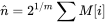假设H的哈希长度为16bit,分桶数m定为32。设一个元素哈希值的比特串为“0001001010001010”,由于m为32,因此前5个bit为桶编号,所以这个元素应该归入“00010”即2号桶(桶编号从0开始,最大编号为m-1),而剩下部分是“01010001010”且显然ρ(01010001010)=2,所以桶编号为“00010”的元素最大的ρ即为M[2]的值。