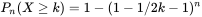 2、进行n次伯努利过程,至少有一次投掷次数等于k的概率是多少?