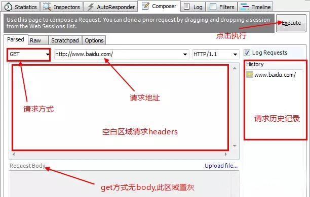 Fiddler Composer的功能就是用来创建HTTP Request 然后发送。 Fiddler创建request有三种方式: