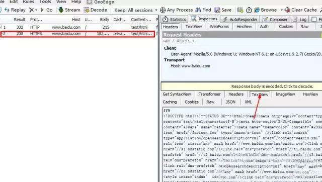 7.查看请求结果,左边会话框会显示请求行,如下图:
