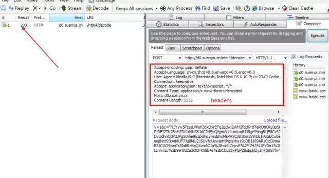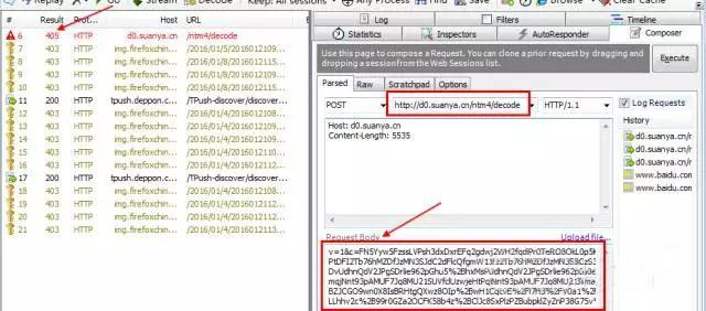 2.通过抓包找到登陆请求url(http://d0.suanya.cn/ntm4/decode)
