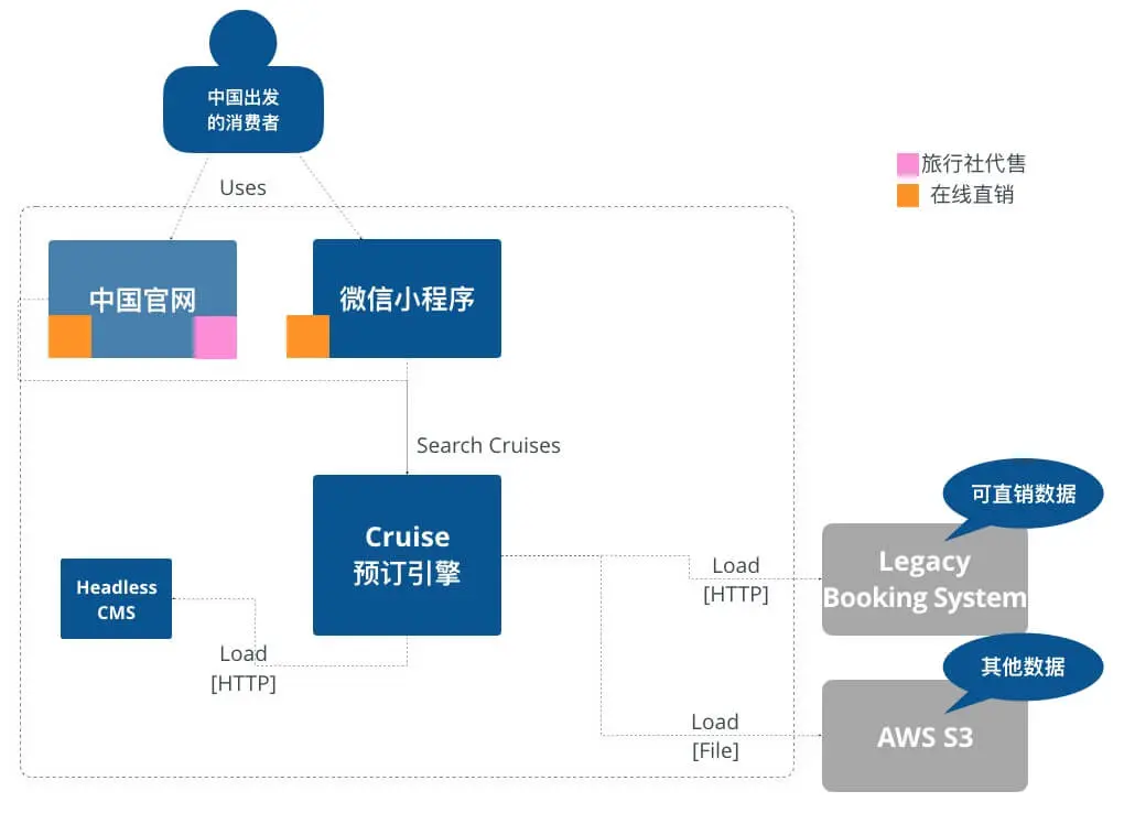 - 中国区官网——这原是一个包含几个HTML页面的遗留应用,本次希望可以提供邮轮搜索的功能,值得注意的是,有部分邮轮是承包给旅行社销售,在网站上也需要展示以便做市场宣传