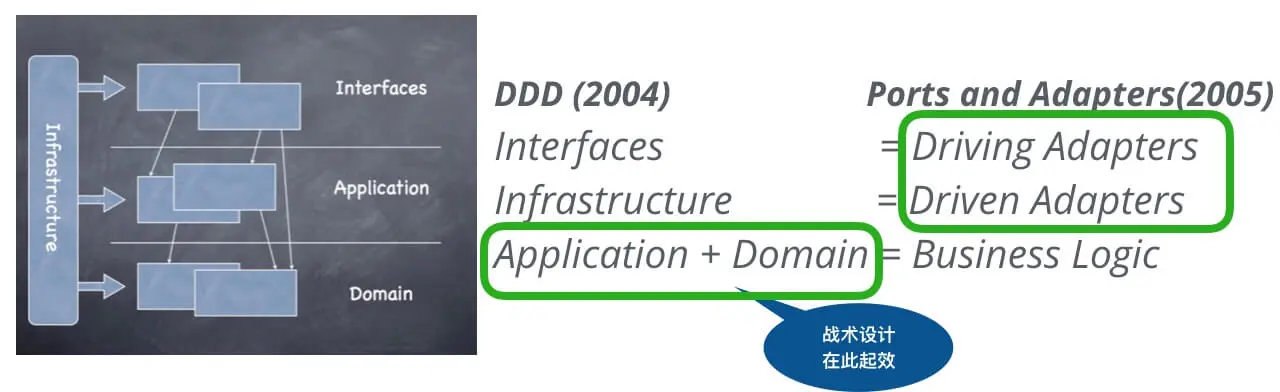 端口和适配器的优势是突出了分层不是重点,技术实现隔离才是关键,让你不再纠结是否允许组件跨层调用。而DDD原著架构的优势是用Application和Domain进一步澄清了业务逻辑这个模糊的概念。不妨合二为一: