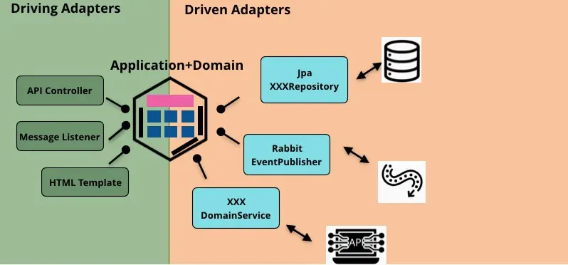 - 绿色是Driving Adapter,如果你对Java-Spring技术栈,可以从命名发现他是一个RestController
