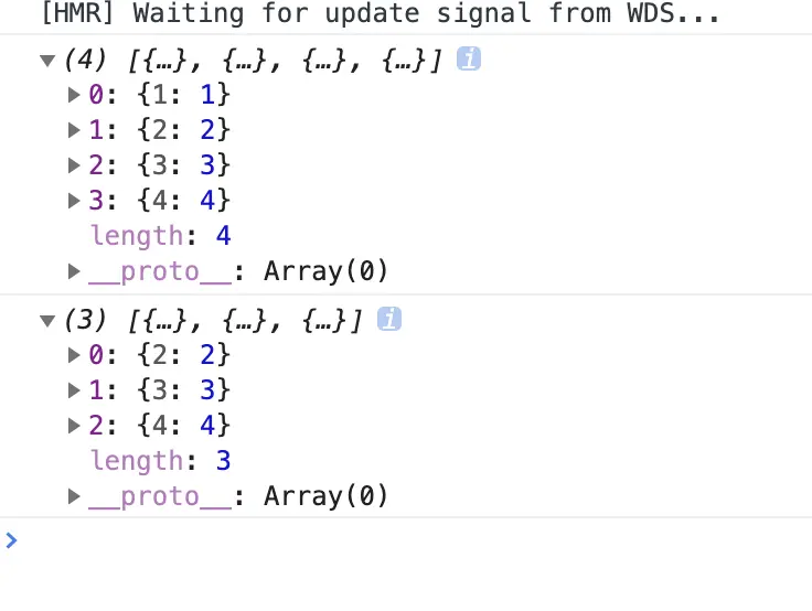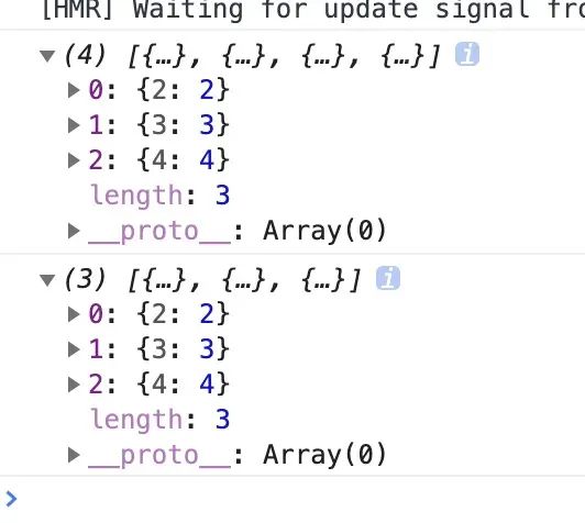 //第二个console [{ 2: 2 }, { 3: 3 }, { 4: 4 }]一切似乎都在意料之中,却又往往超乎寻常,那我们来看看实际的效果吧