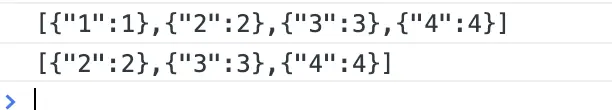 //第一个console [{ 1: 1 }, { 2: 2 }, { 3: 3 }, { 4: 4 }]