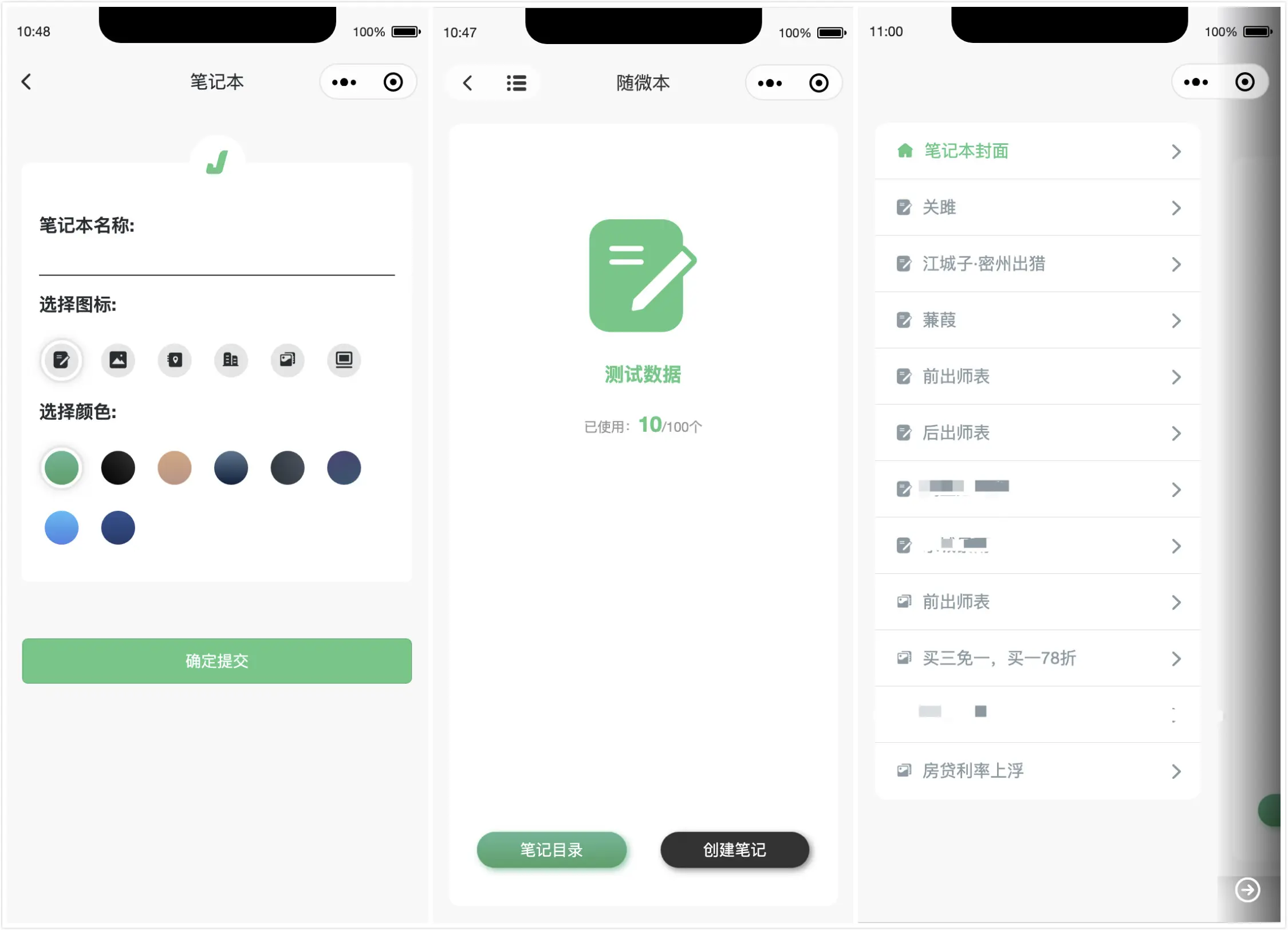 - 用户笔记本列表(目前:每个用户拥有最多6个笔记本,每个笔记本最多写100个笔记)