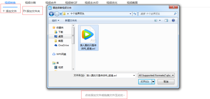 1、首先把avi格式的视频添加到软件中。添加的时候可以点击软件左上角的“添加文件”或“添加文件夹”按钮,也可以用拖拽的方式直接把avi格式的视频添加到软件中。以上多种添加方式都支持批量添加文件或文件夹,可以根据个人习惯进行添加。