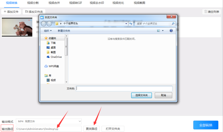 3、设置好输出的视频和分辨率后点击“输出路径”按钮设置文件存储到电脑的位置。设置“输出路径”时可以在输出路径的输入框中直接写入路径也可以把路径拷贝下来然后粘贴到输入框中,或者点击输入框右边的“更改路径”按钮选择视频输出到电脑的位置。