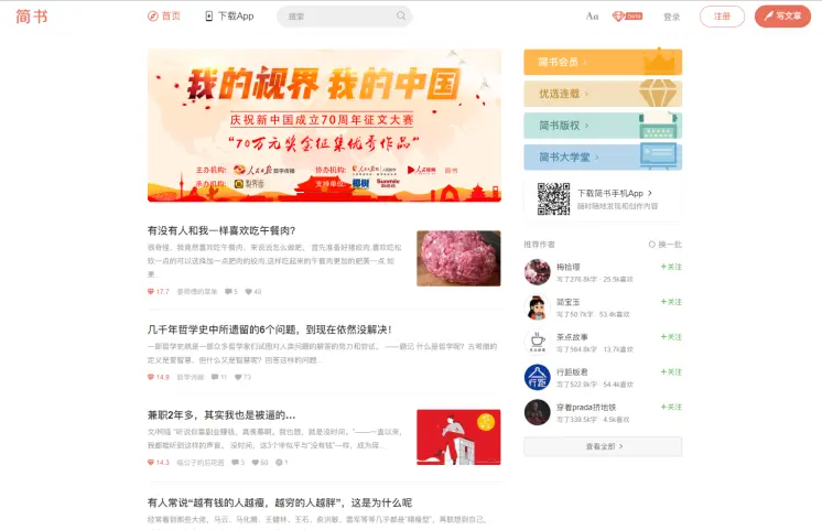 简书是一个以互联网为基础的可以进行独立内容创作和发布的平台。