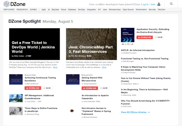 DZone是一个允许用户分享最新IT新闻和编程资源的社区。
