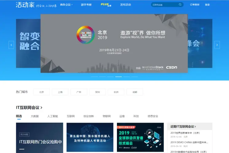 点评:国内知名活动网站,因为他的独立二级域名,导致很多技术活动都有它。