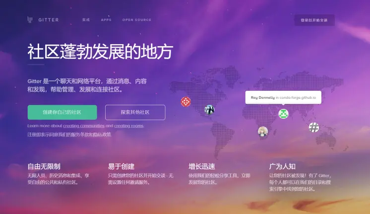 Gitter是GitHub存储库的开发人员和用户的即时通讯聊天室系统。