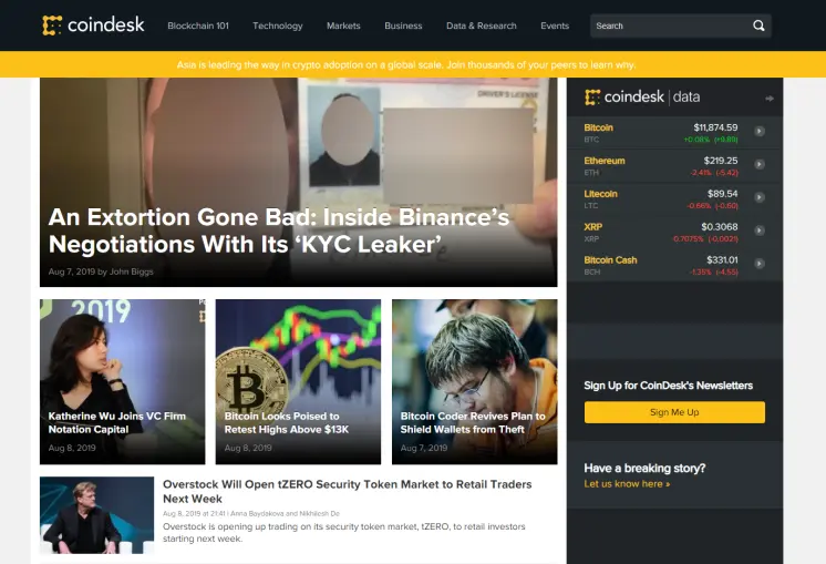 CoinDesk是一个专注于比特币和数字货币的新闻网站。