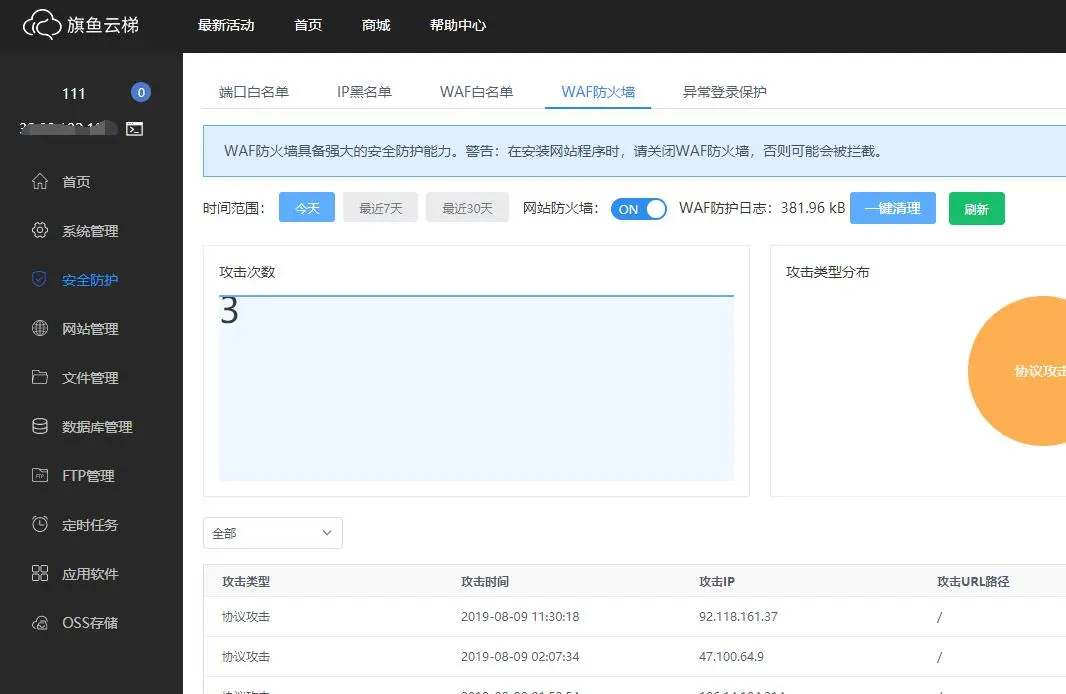 并且旗鱼云梯针对服务器的安全防御,有完善的waf防火墙机制,能够抵御黑客和扫描软件对服务器的攻击,防护一体云端化,让服务器安全运营并符合SEO底层优化。