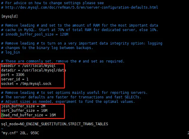 修改my.cnf文件配置-文件地址/usr/local/mysql/my.cnf