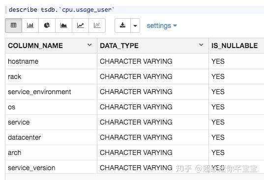 describe tsdb.`cpu.usage_user`下图显示了上面的'describe'命令的部分结果:
