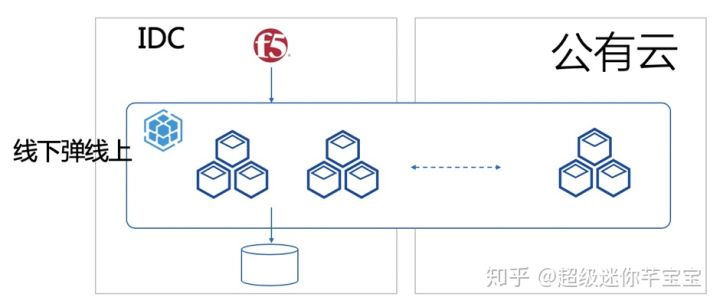 一类用于应对“云突发”。如下图 1 所示,正常情况下用户使用自己的 IDC 集群提供服务,当应对突发大流量时,迅速将应用扩容到云上集群共同提供服务,将多集群作为备用资源池。该模式一般针对无状态的服务,可以快速弹性扩展,主要针对使用 CPU、内存较为密集的服务,如搜索、查询、计算等类型的服务。