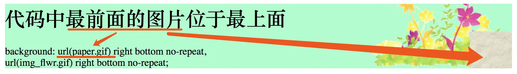 想说一点,一个元素可以添加多个背景图。下面是两种不同的写法,效果一样。