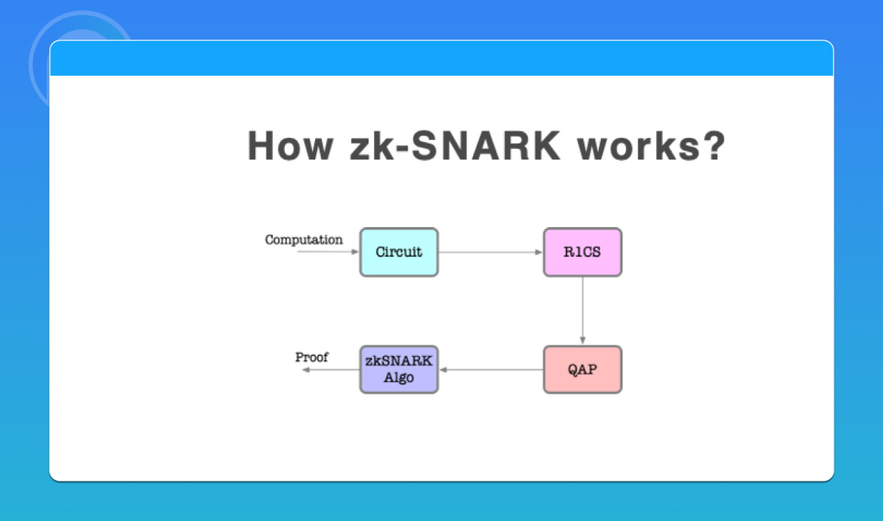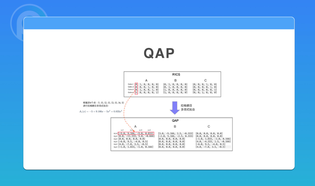 如果要使用 zk-SNARK 零知识证明,就要首先将要证明的东西形成一个计算,并用计算电路表达出来,最后生成 QAP。零知识证明,最重要的一个逻辑就是 QAP。