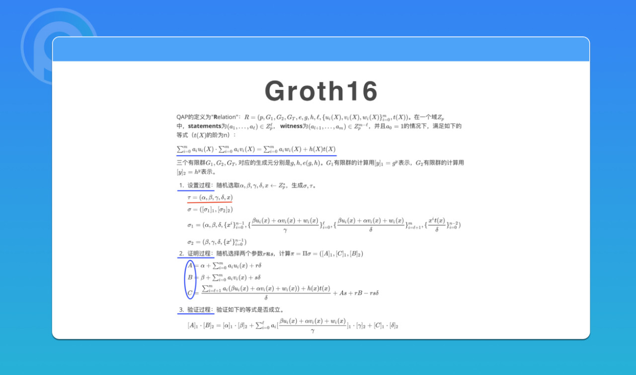 Groth16 算法中涉及到了很多密码学的知识,包括:椭圆曲线、同态隐藏、双线性映射等。