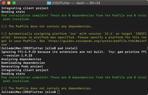 OS X升级到10.14.6后,无法通过pod添加flutter依赖 Jolie誉 2019-08-09 150 阅读1分钟 昨天升级了OS后,无法通过pod install添加flutter依赖,也没有错误提示,如何解决。