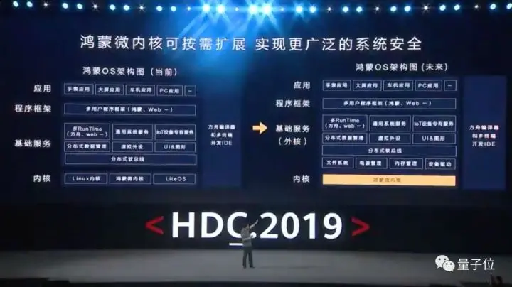 至于为何鸿蒙OS要采用微内核,余承东说是为了保证内核级别的安全,以后使用微内核将是一大趋势。微内核天然无root权限,外核服务相互隔离,从源头提升系统安全。