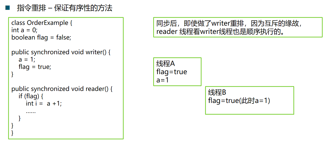 - 在线程外观察,操作都是无序的。(指令重排 或 主内存同步延时)