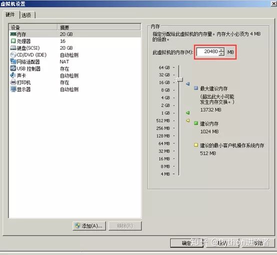 7、这里再次提示同样的错误,而且内存大小再次下降了一个档次,于是乎我们还需要将内存进行压缩一下下,设置的方法同之前一致,这里不再赘述。索性将内存大小设为16GB。即16384MB,如下图所示。
