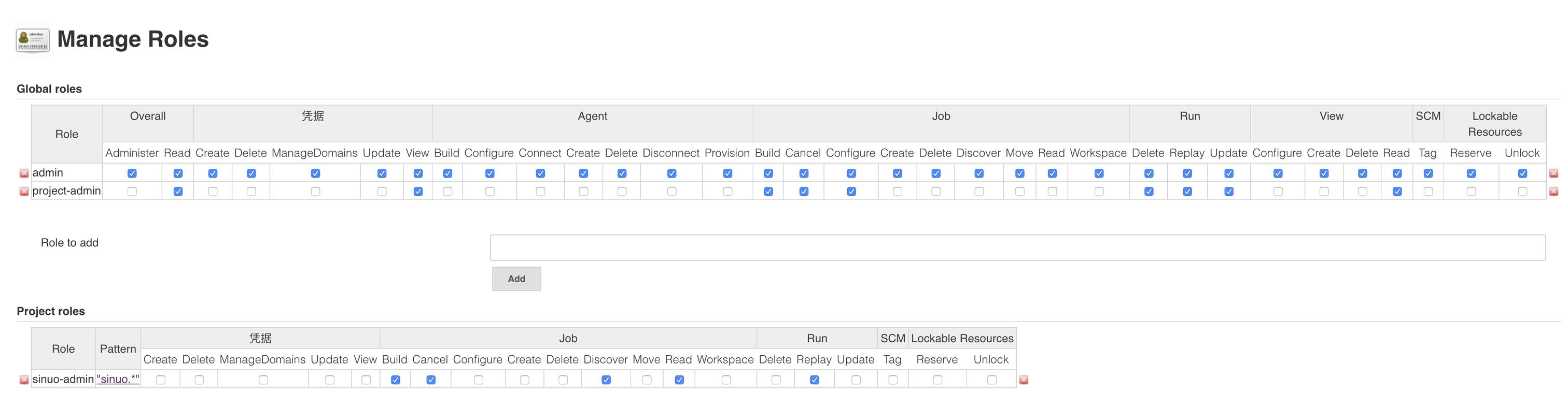 比如有一个项目叫sinuo,我们想实现sinuo-admin用户登录后只能查看和构建以sinuo开头的项目名,并且不能修改Job配置。