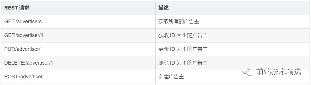 可见,请求路径相同,但请求方式不同,所代表的业务操作也不同,例如,/advertiser/1 这个请求,带有 GET、PUT、DELETE 三种不同的请求方式,对应三种不同的业务操作。