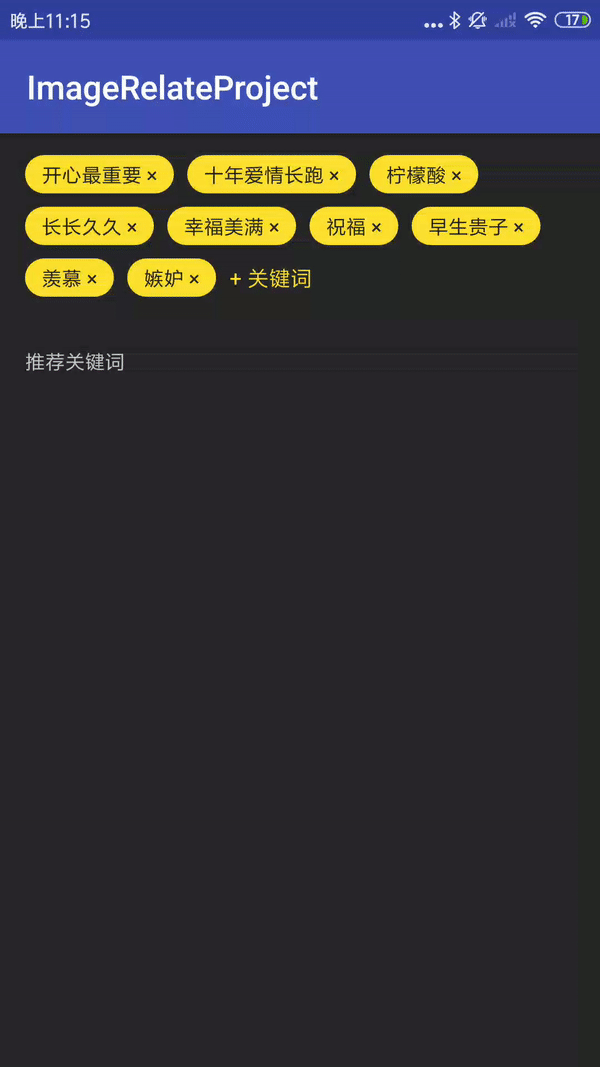 actionId == EditorInfo.IME_ACTION_DONE 监听键盘完成按钮。之后添加一个标签selectLabelData.add(content);动态生成 initselectLabelData();
