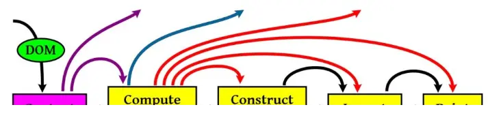 渲染的流程基本上是这样(如下图黄色的四个步骤):1.计算CSS样式 2.构建Render Tree 3.Layout – 定位坐标和大小 4.正式开画