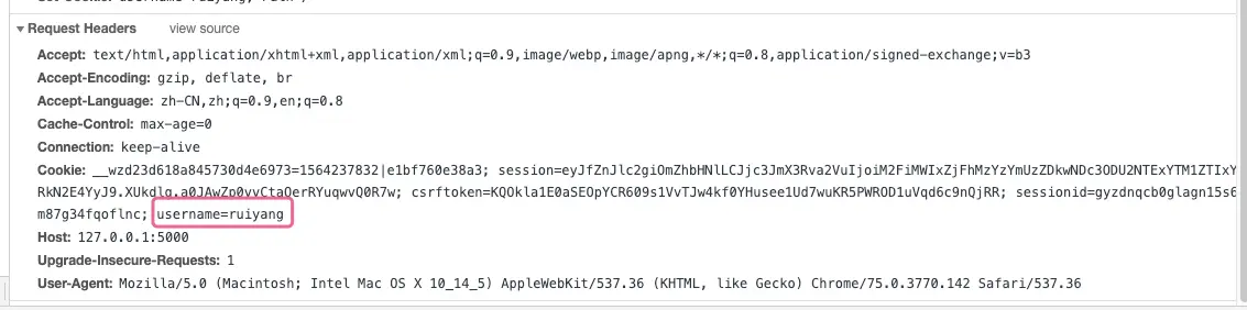 在设置cookie之后再次请求,就会在请求头中看到为客户端设置的cookie: