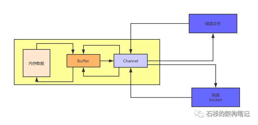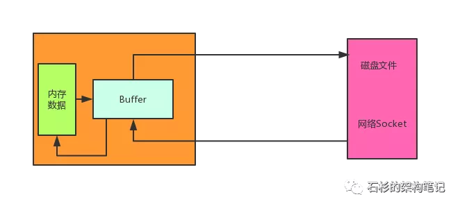 这俩个过程都有buffer存在,数据都是通过buffer来完成读写。