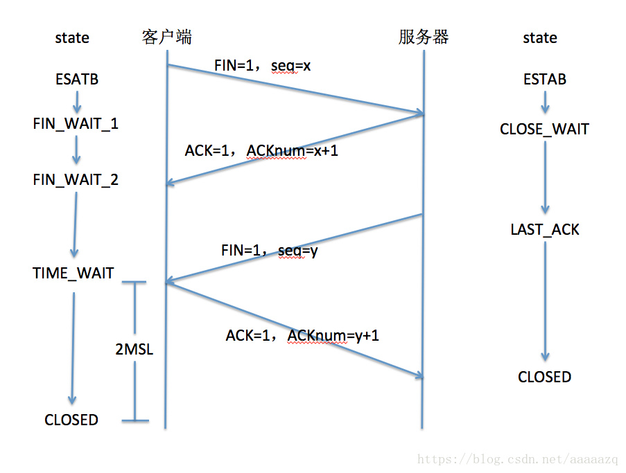 客户端等待了某个固定时间(两个最大段生命周期,2MSL,2Maximum Segment Lifetime)之后,没有收到服务器端的ACK,认为服务器端已经正常关闭连接,于是自己也关闭连接,进入CLOSED状态。