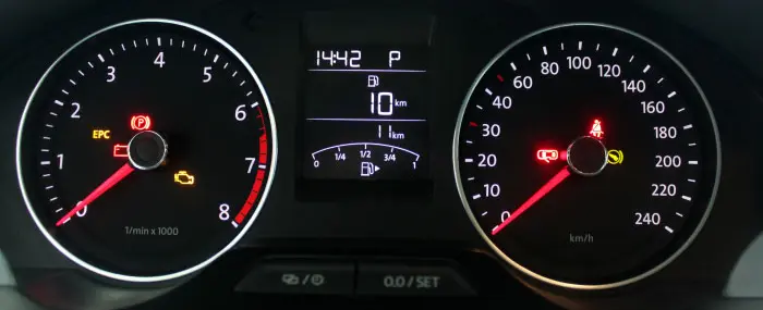 在大部分讲进度条的文章中,“状态型”进度条较少有人提及,但不管是在实际生活中,还是互联网产品中都十分常见。下图中的汽车时速表,就是典型的“状态型”进度条,形式上也脱离了条形。