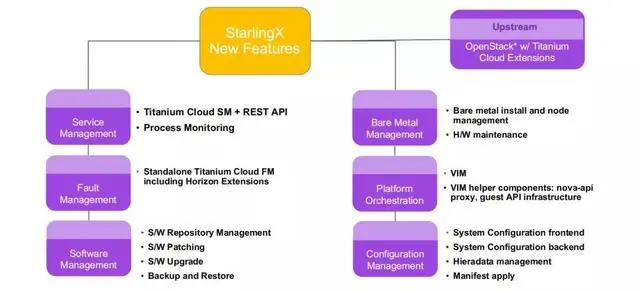 2018年10月,OpenStack社区发布了StarlingX首个版本,最初的starlingX主要是通过6大组件,来完成对Openstack的安装部署,监控管理等。