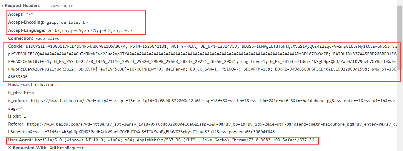 浏览器为此域提供的cookie:键值对,用于跟踪不同页面请求之间的网站状态;cookie主要存储登录用户的名称,服务器分配给用户的密码,用户的一些设置等;cookie存储在客户端的文本文件中,并发送到每个请求的服务器。