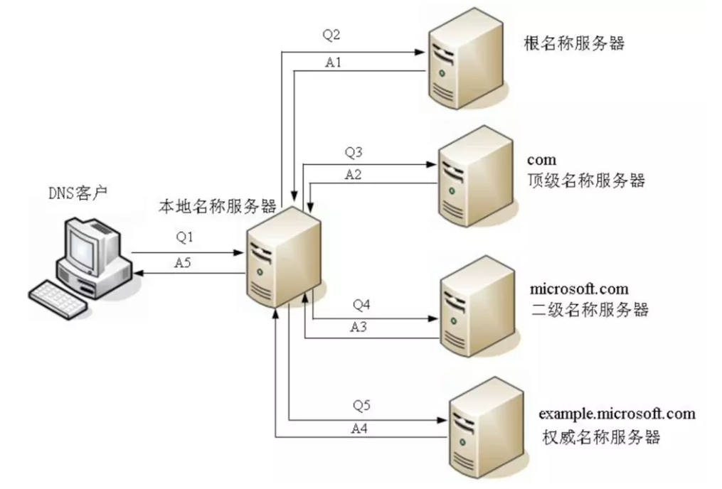 DNS迭代查询过程: