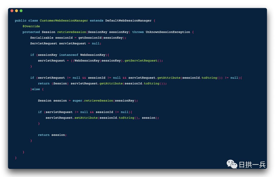查看源码,可以看到调用默认SessionManager的retriveSession方法,我们重写该方法,将Session放入HttpRequest中,进一步提高session访问效率