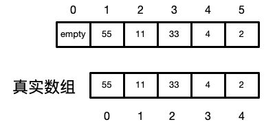 我们在上面的操作时,建立的基础都是把数组的下标从1开始的,所以我们在涉及到真正的数组操作时,下标是从0开始的