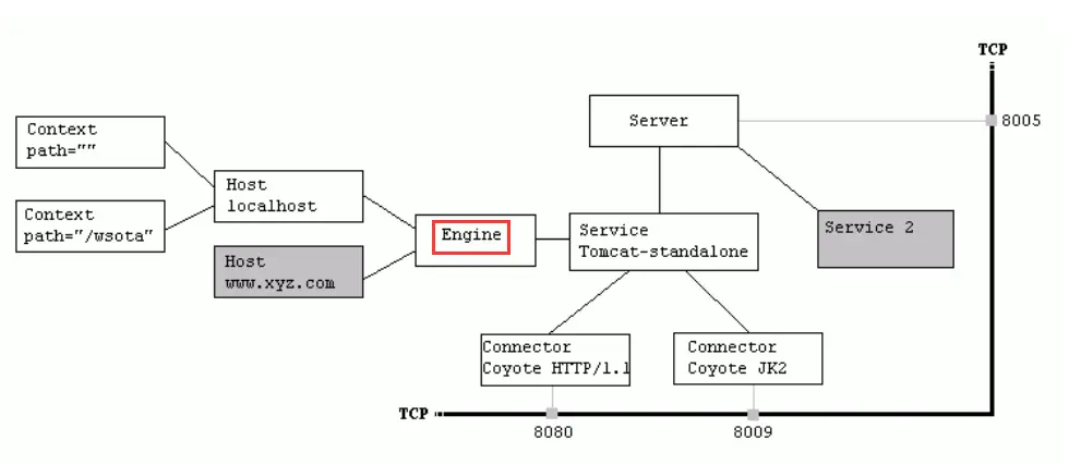 - Connector把该请求交给它所在的Service的Engine来处理,并等待来自Engine的回应