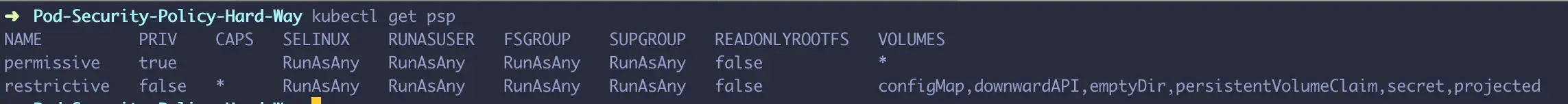 sudo kubectl get psp