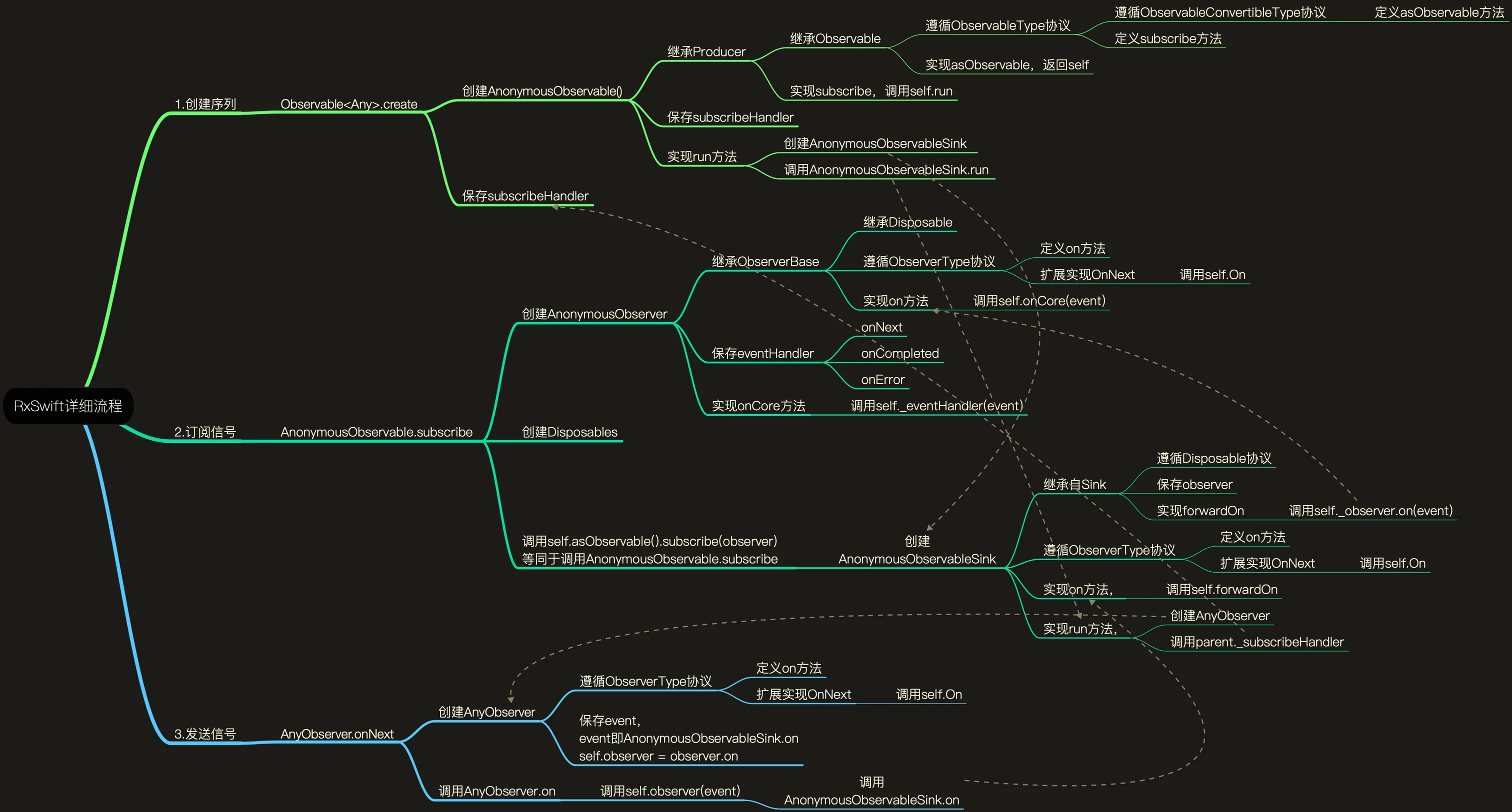 在上一篇函数响应式编程思想&RxSwift核心逻辑中,已经分析了RxSwift的核心逻辑,这篇将详细赘述RxSwift的具体流程。