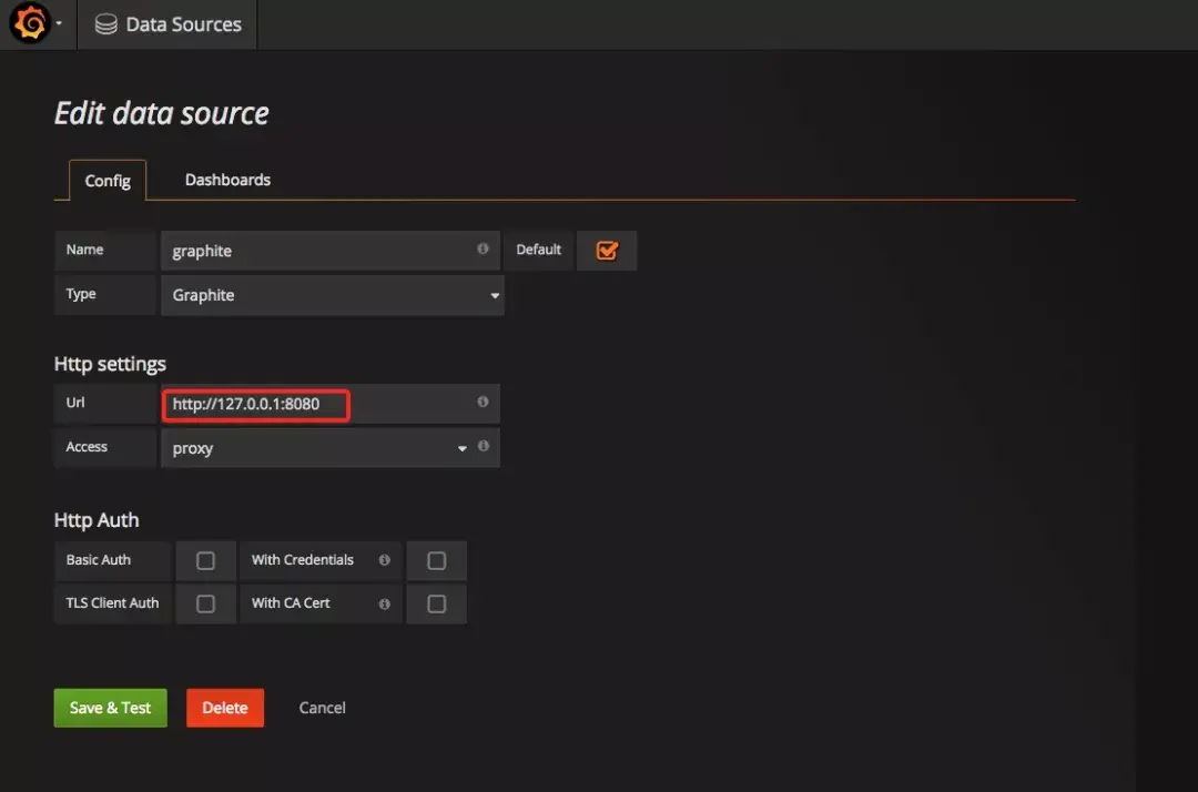 进入Grafana后台,进行配置点击 「Data Sources」进行配置Graphite的数据(来自前端statsd收集)