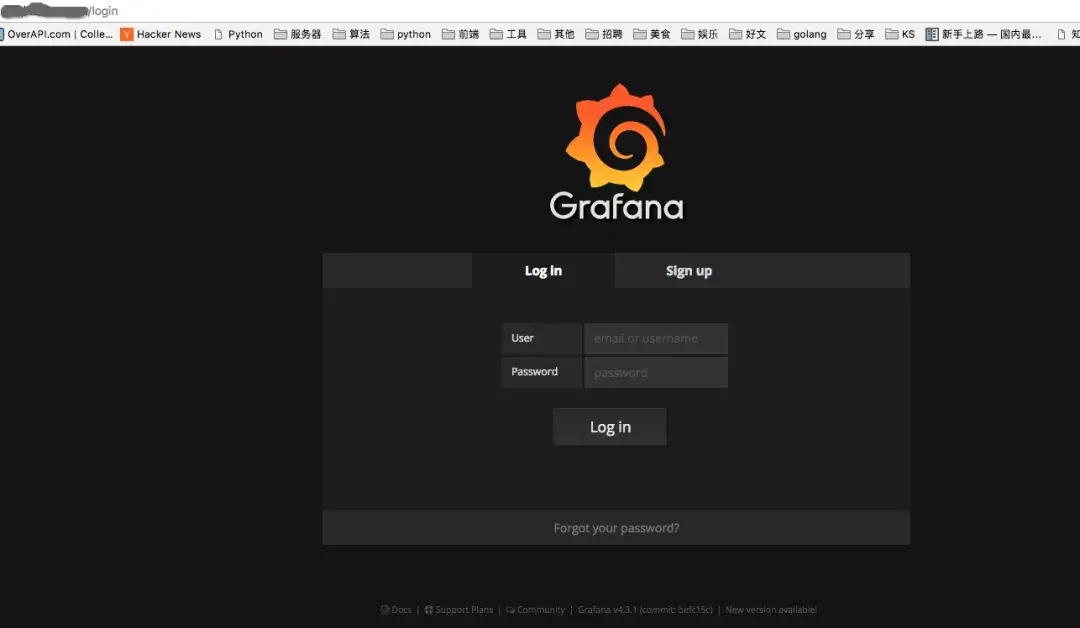 启动之后访问3000端口就能看到这样一个页面,默认的帐号密码:admin,admin可以通过配置github或者google登录。