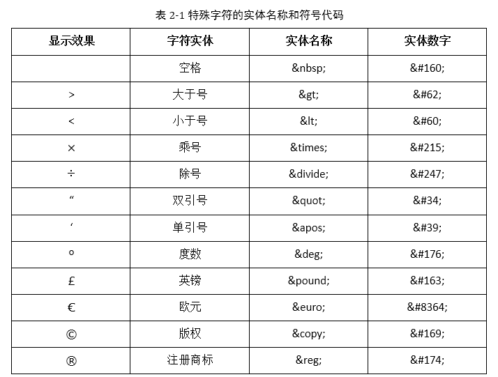 在HTML5文档中存在一些特殊字符无法直接使用。例如小于符号(<)和大于符号(>)是无法直接输出的,因为它们会被误认为是元素标签的组成部分;而连续空格也无法正确显示,会被浏览器缩减为单个空格。存在此类情况的一系列特殊字符在HTML5中称为字符实体(Character Entities)