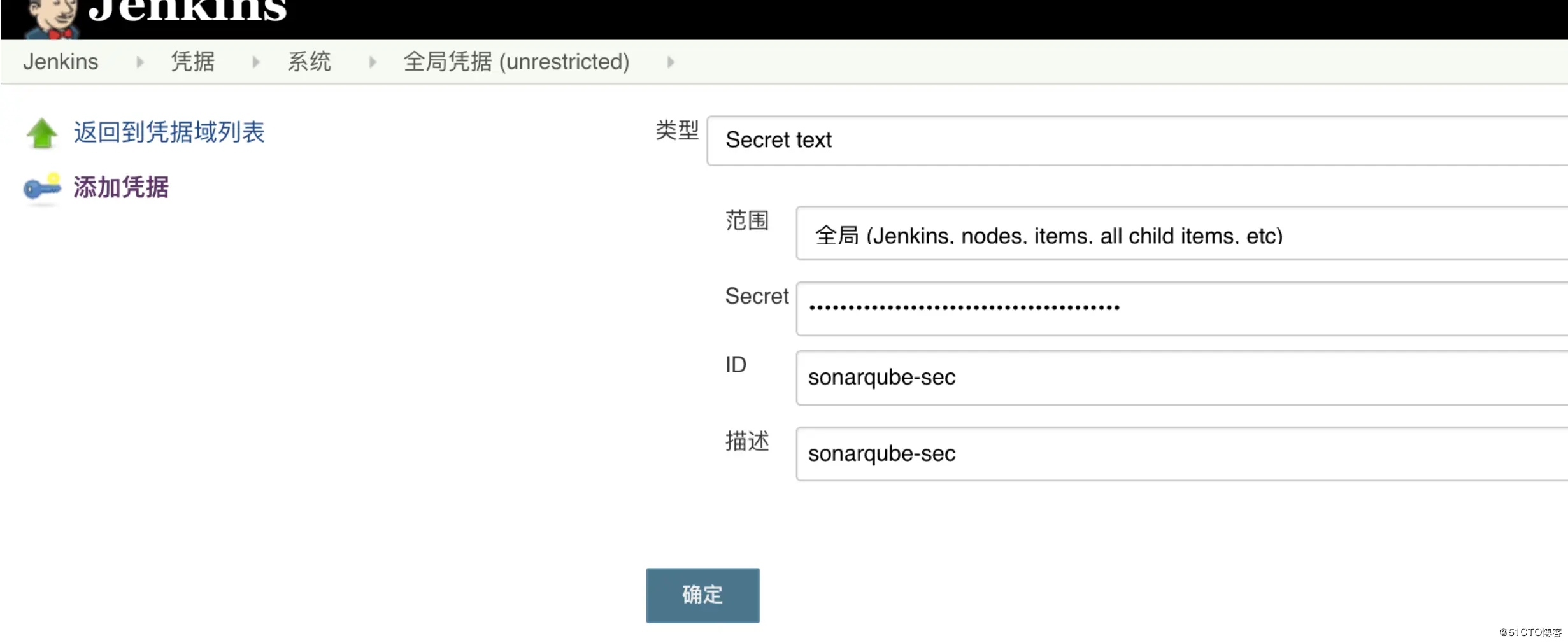 jenkins利用sonarqube的token创建凭据