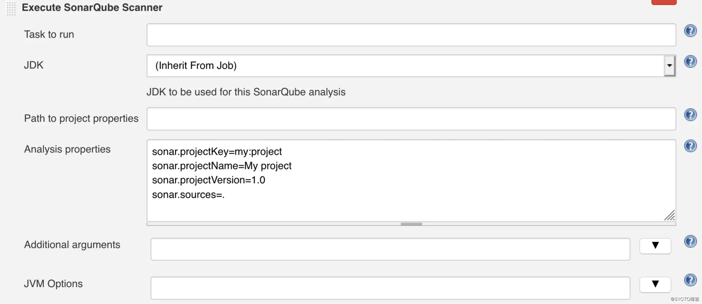 根据扫描的程序语言填写对应的analysis properties,在此填写项目相关信息。